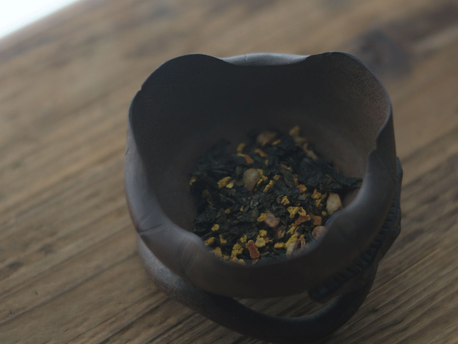 徳島県上勝町でつくられた後発酵茶「阿波番茶」に、焙煎した柚子の種とみかんの果皮を合わせました。